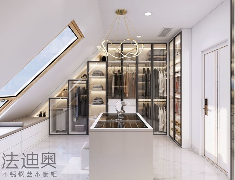 Bu gardırop, genel bir SKU yerine tasarım odaklı bir sistem olarak sunulmaktadır.Premium konut projeleri için daha çözülmüş bir görsel kimlik oluşturmak için paslanmaz çelik dolap yapısı ile birlikte kontrol edilen bir bitiş paleti kullanır.