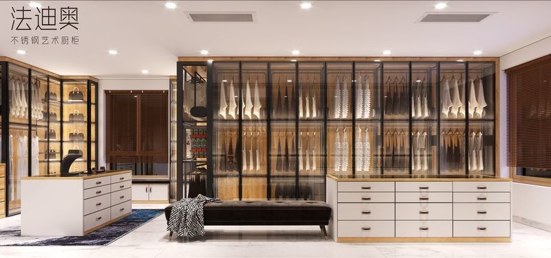 Bu özel gardırop farklı bir bitirme stratejisi etrafında inşa edilmiştir: Stainless çelik dolap yapısı ile eşleştirilmiş katmanlı bir premium palet.Bu kombinasyon alıcılara paslanmaz çelik dolaplardan beklenen temizleme kabiliyetini ve proje dayanıklılığını kaybetmeden daha sıcak bir lüks ifadesi verir.