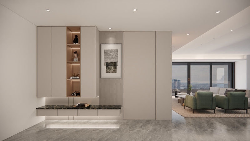 Bu ayakkabı dolabı, genel bir SKU yerine tasarım odaklı bir sistem olarak sunulmaktadır.Premium konut projeleri için daha çözülmüş bir görsel kimlik oluşturmak için paslanmaz çelik dolap yapısı ile birlikte Beige kullanır.