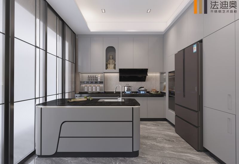 | S: Bu Sessiz Gri Paslanmaz Çelik Mutfak Dolabının tasarım dilini ayırt edici yapan nedir? En güçlü ipuçları Gri'dir. Yüzen ada tasarımı ile birlikte heykelci bir estetikle, pratikliği çarpıcı bir görsel çekiciliği birleştirir.Bu sayfaya sadece maddi iddiaları tekrar eden genel bir dolap listesinden daha net bir tasarım açısı verir.. |