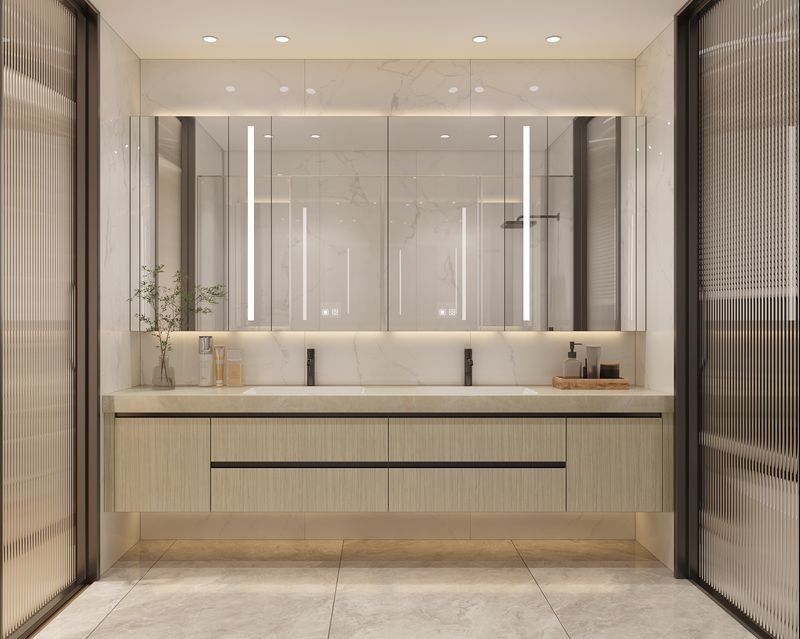 Bu özel banyo boşluğu farklı bir bitirme stratejisi etrafında inşa edildi: Ahşap Taneler Paslanmaz çelik dolap yapısı ile eşleştirildi.Bu kombinasyon alıcılara paslanmaz çelik dolaplardan beklenen temizleme kabiliyetini ve proje dayanıklılığını kaybetmeden daha sıcak bir lüks ifadesi verir.