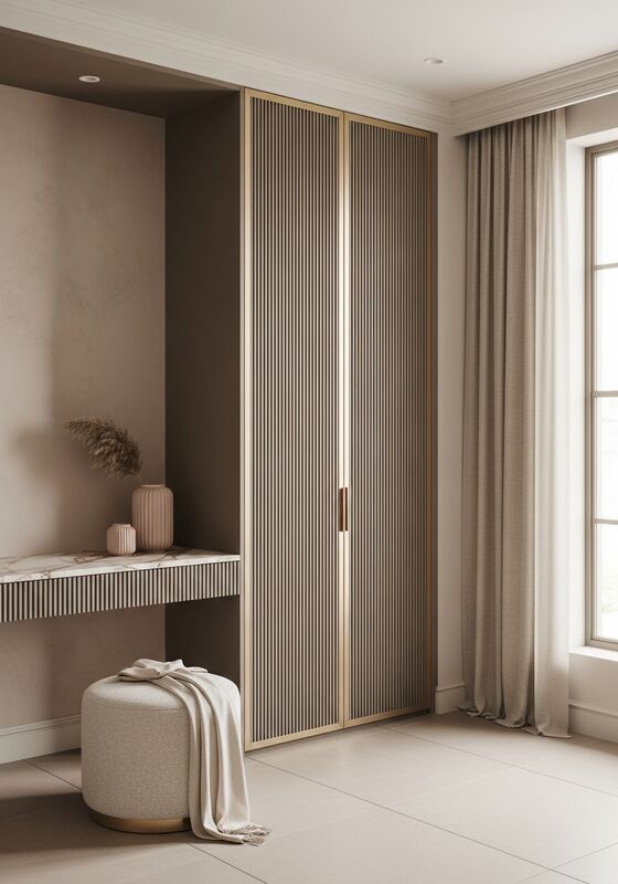 | Tasarım ÖzellikleriEl sanatı dokusuyla yumuşak kadınsı minimalizm Dikey flüt, sıcak mantar mavi baskınlığı ile görsel gürültü yönü olmadan ince boyutlu ilgi yaratır,Açık şampanya perdelerine uygun tonlar, yumuşak pembe mermer aksanları, şampanya altın metal açıklar, disiplinli oranlar ve dikey mikro-fluted panel kapıları 15mm eğilime sahip yumuşak gölge ritmi yaratır.Sayfa çözülmüş bir özellik olarak okunmalıdır, genel bir depolama kutusu değil. |