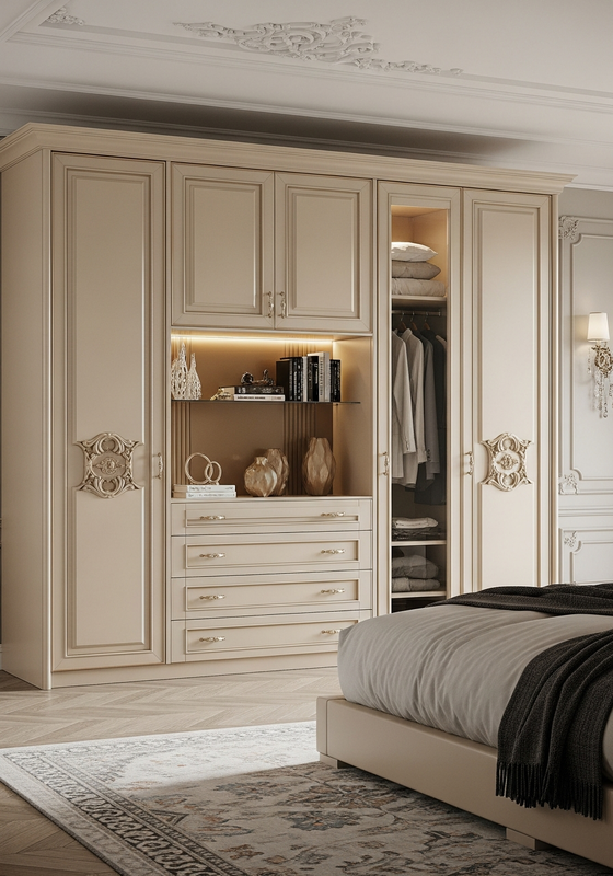 | Usage | Master bedroom wardrobe for luxury residential, boutique hotel suites, and high-end residential developments seeking statement storage with warm architectural presence |