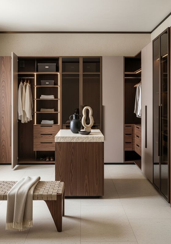 | Kullanımı | Birincil yatak odası yürüyen dolaplar, misafirperverlik süiti soyunma odaları, lüks konut dolap sistemleri, mimar tarafından belirlenen özel dolap kurulumları |
